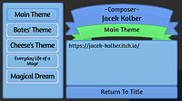 Title Screen Added a Credits section Now, there's no need to have the full credits in its own separate text file Updated the Controls section Added a Music Gallery based on this one Improved Aesthetic...